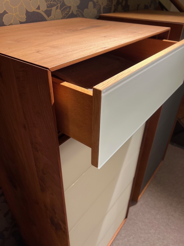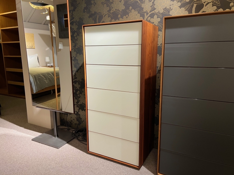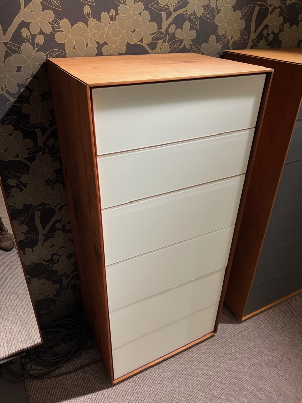 astiger Nussbaum massiv geöltGlas matt weißB. 60, H. 133, T. 45 cm