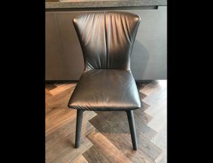 Bezug Leder Graphitschwarz mit Faltenwurf,Gestell Eiche dunkelgrau