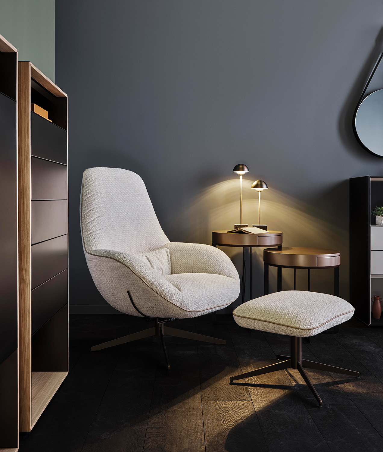 MOMO LIGHT – Sessel und Hocker für pures Relaxen. Einfach die Welt für einen Moment vergessen. MOMO verbindet zeitlose Formensprache mit außergewöhnlichem Komfort. Die Bilder vermitteln bereits einen guten Eindruck, wie komfortabel der MOMO Sessel ist – aber Sie sollten es selbst erleben.