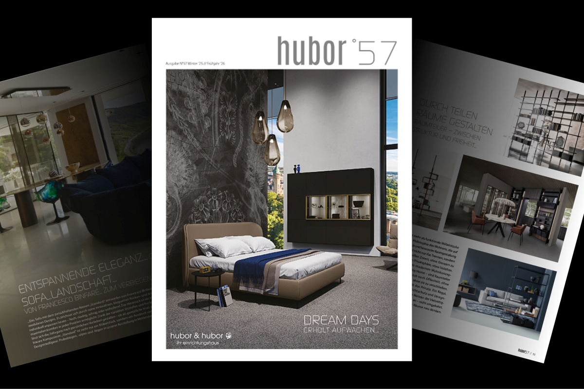 Frisch gedruckt und voller Ideen: Die neue Ausgabe unseres Magazins, die hubor°57, ist erschienen – mit inspirierenden Themen rund um zeitgemäßes Wohnen und stilvolles Einrichten.